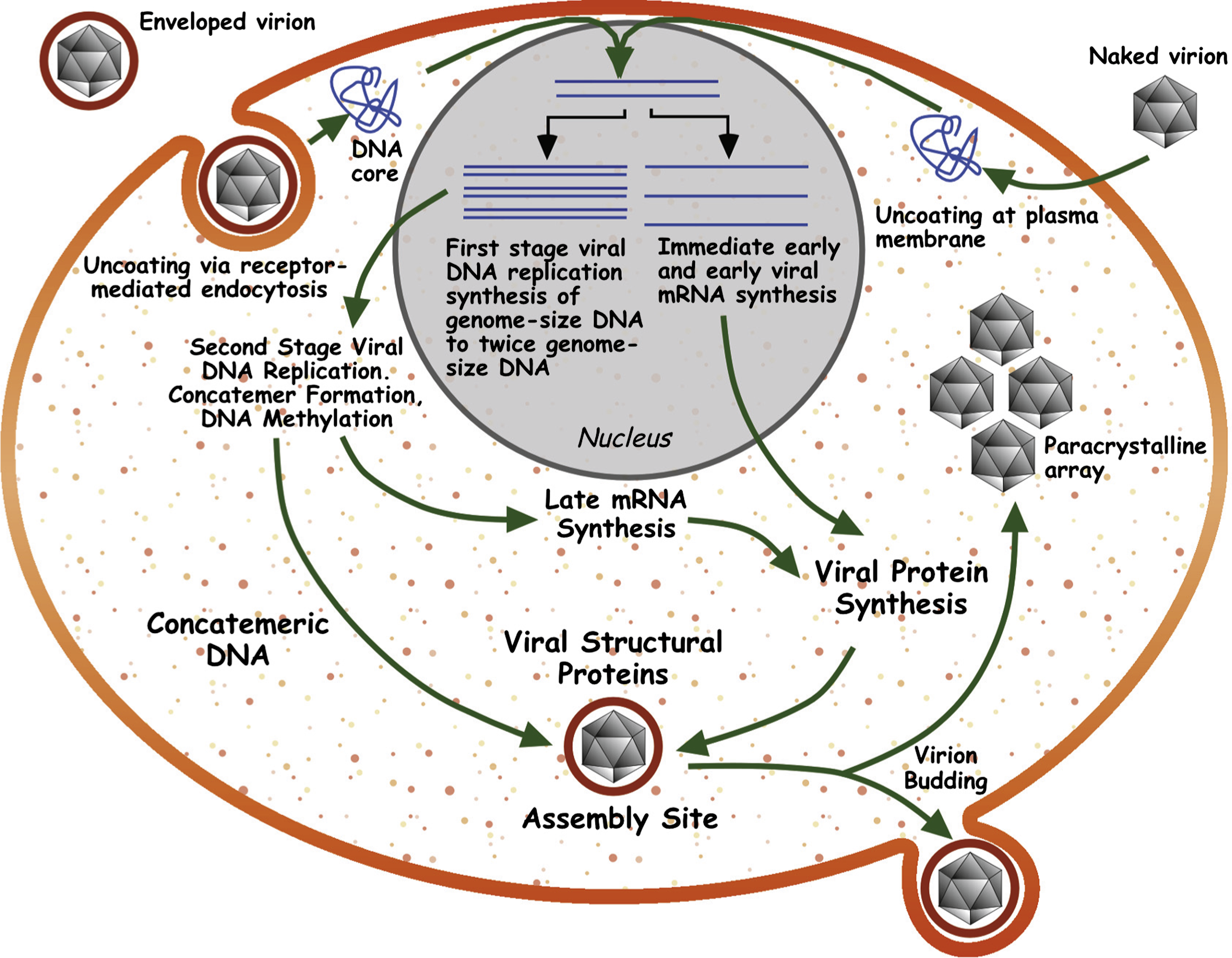 Figure 5 Replication cycle of frog virus 3 (FV-3).