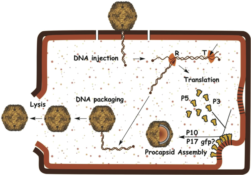 Figure 3 Diagram of the life cycle of Enterobacteria phage PRD1; for details see the text.